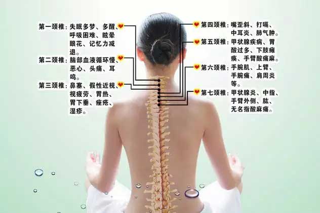 頸椎有七節,神經連接頭面部。頸椎是脊柱當中最容易受傷最沒有安全感的地方; 頸部有兩條大動脈;肩頸就像人體的十字路口,是氣血供應頭部的主要通道。