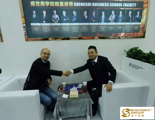 以白色和綠色為主色調的盛世展館,憑借大氣、優雅的設計、國際范的品牌海報、震撼的各類文化視頻,吸引了眾多參觀者涌來。盛世商學院、恒康國際一一亮相,龐大的占地面積讓整個展館成為了全場之星。