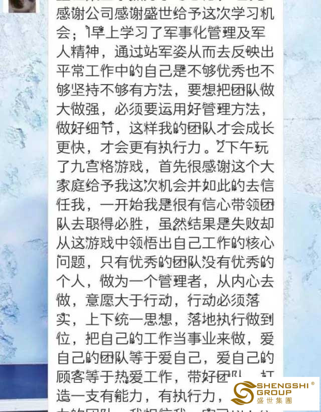 回歸初衷,感恩一切的正能量,感恩領(lǐng)導(dǎo)的關(guān)愛和鼓勵(lì),感恩老板給予的平臺(tái)。傳遞愛與奉獻(xiàn),學(xué)會(huì)感恩,學(xué)會(huì)敢于擔(dān)當(dāng)責(zé)任,這就是盛世商學(xué)院【贏定人生密訓(xùn)營】。